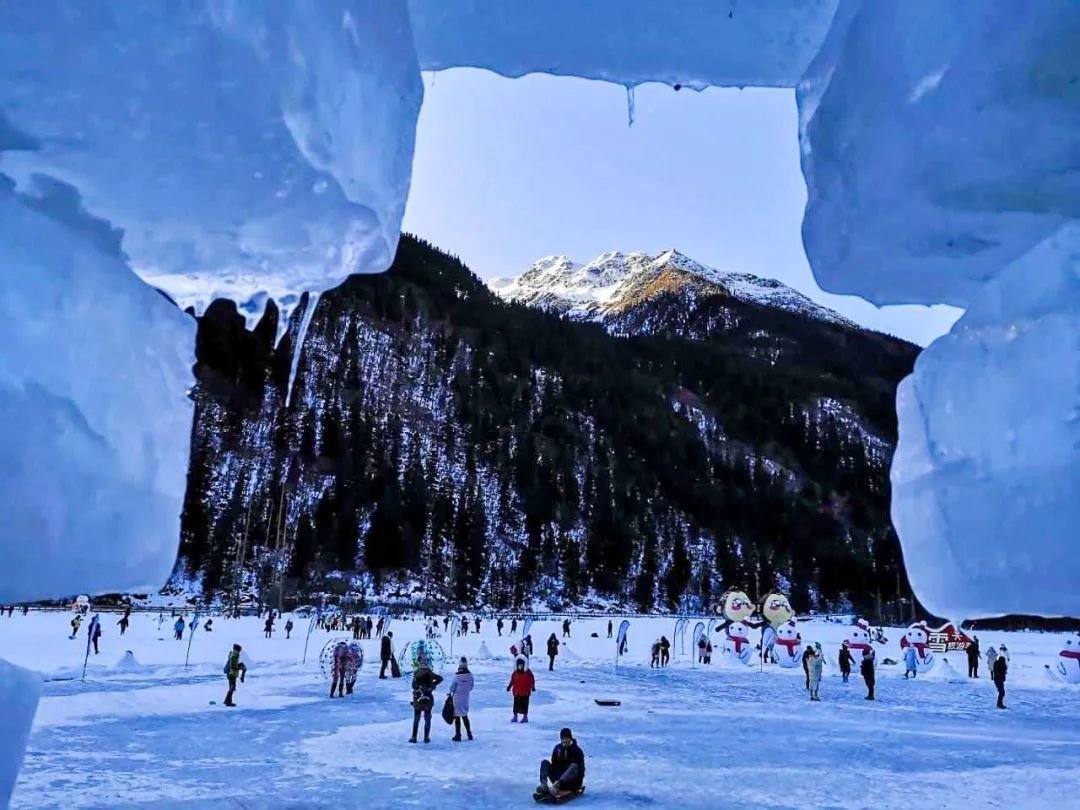 冬季的达古湖已凝结成冰湖,成为天然滑冰场。在湖面来一曲冰上芭蕾、或是短道速滑,这是达古冰川带给冬日南国的又一神奇体验。