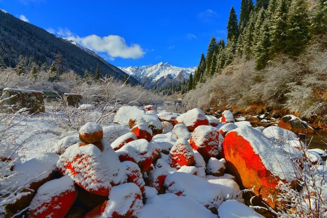 高原特定环境下形成的红色石头,颜色鲜艳美丽,尤其是在白雪的映衬下,愈发好看,红运皆鸿运,年末啦,来这祈福一定心想事成!