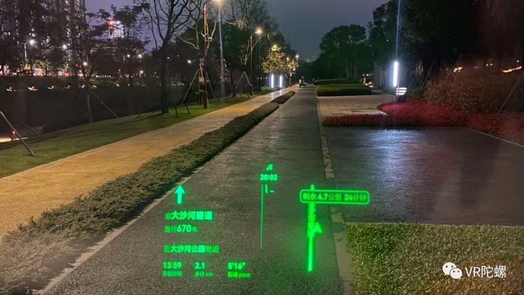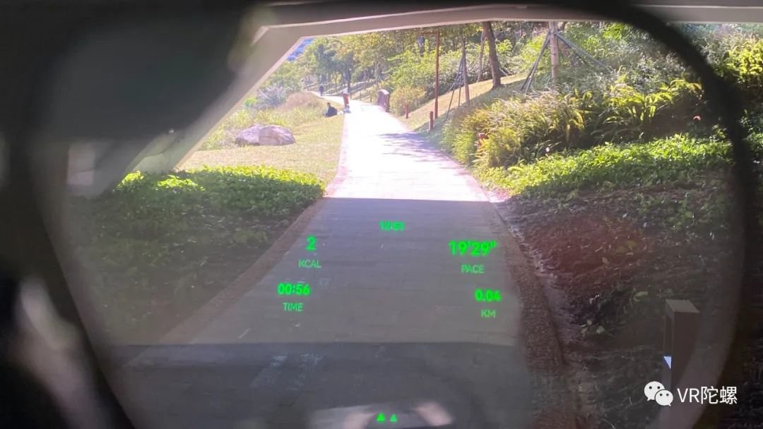 在运动体验时,陀螺君注意到,眼镜的画面显示距离与一些观影类产品相比会远得多,一般AR眼镜产品的显示画面距离多在4米或5米,而Meta Lens S1却达到了15米,这应该是为骑行等运动场景刻意做的优化设计,类似于汽车HUD,如果显示距离太近,会使得使用者的视线在现实和屏幕之间来回切换,容易发生危险。