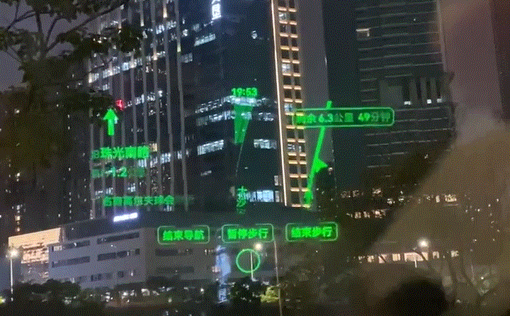 打开步行/骑行功能,它会在界面中显示:运动时长、里程、步数、速率、热量消耗等详细信息,这有点类似于码表等产品,不过,相较于码表,Meta Lens S1可提供更为直观的信息提示效果。