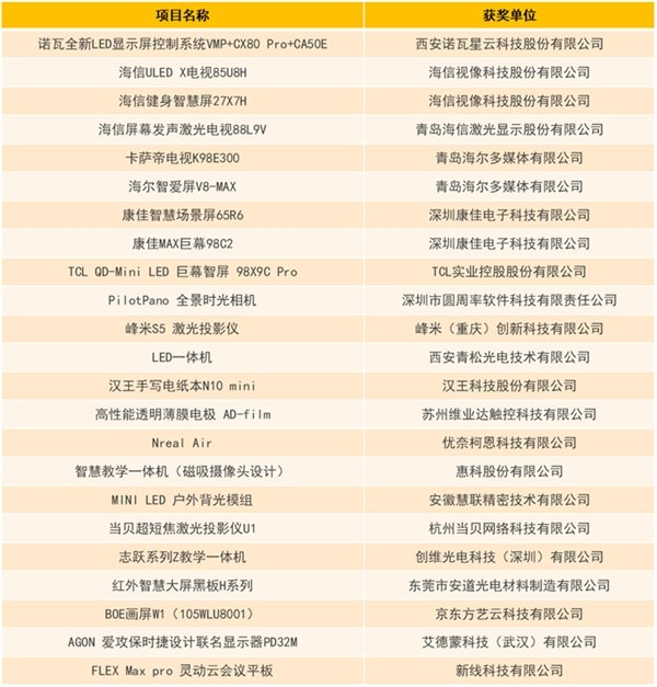 “科技创新奖”旨在表彰我国音视频领域内表现突出的企业创新产品、技术、应用和设计,从而提升我国音视频行业的自主创新能力和核心竞争力。中国电子视像行业协会副秘书长董敏颁布了获得2022年度“科技创新奖”的企业名单: