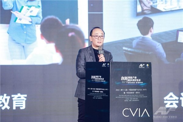 中国电子视像行业协会会长刘棠枝通过现场连线的方式代表主办方对大会致欢迎辞。他表示,在国内国外复杂的环境下,中国音视频行业砥砺前行。当前,中国已站在消费电子产业链创新发展的潮头,勇夺彩电、智能手机、智能可穿戴等若干个产业“世界第一”。整个音视频产业正拥有前所未有的技术储备,8K超高清显示、Mini LED背光显示、Micro LED显示、电子纸显示、激光投影、物联网、AI算法、AR/VR等技术都相继取得突破。2022年协会也开展了一系列着实有效的工作:行业政策的参与制定、废旧产品回收处理体系的构建、会员线上培训交流、“汰旧换优”活动、商用显示和消费电子领域标准发布等,从而推动行业的高质量发展,构建视像化美好生活。