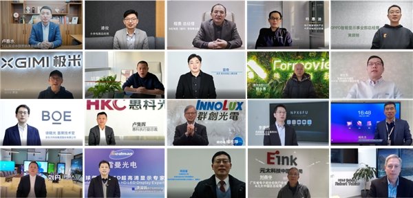 TCL实业中国营销本部副总裁卢春水、小米电视总经理潘俊、长虹电视(国内)营销事业部总经理程勇、海尔智家视听产业卡萨帝电视总经理杨惠迪、OPPO智能显示事业部总经理黄顺明、极米科技副总裁罗廷、JMGO坚果投影董事长胡震宇、当贝联合创始人兼总裁雷奇、峰米投影CEO赖永赛、冠捷科技中国区AOC&飞利浦显示器总经理阎立东、京东方集团首席技术官徐晓光、惠科执行副总裁卢集晖、群创光电总经理杨柱祥、视源股份MAXHUB总裁李建民、皓丽智能科技总裁杨先念、梦派科技集团创始人刘丹、雷曼光电董事长兼总裁李漫铁、元太科技中国区总经理刘森华、HDMI协会总裁Robert Tobias、华南先进光电子研究院院长/国华光电创始人兼董事长周国富等行业大咖通过远程视频,对音视频产业的发展表达了美好的祝福与期盼,同时畅想了行业未来发展愿景,期待与行业伙伴们一起携手共进,持续共赢,共创数字化新未来。