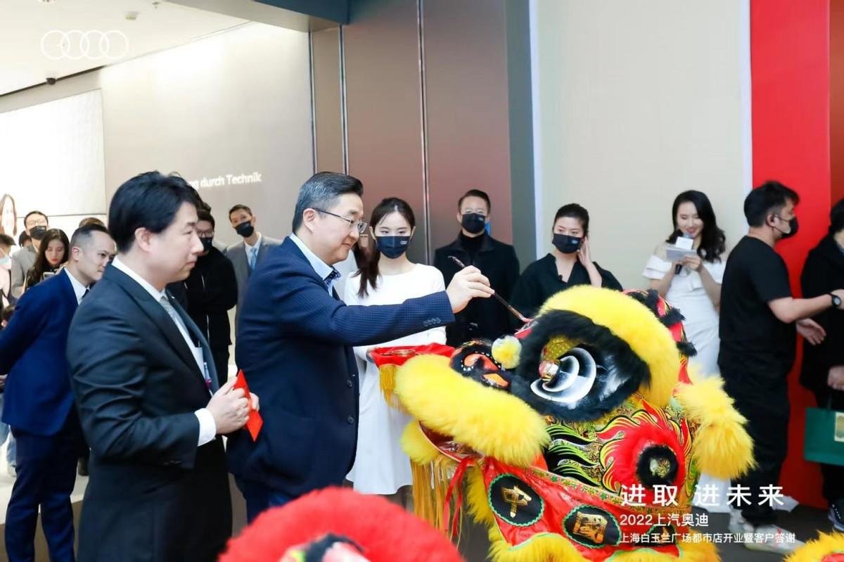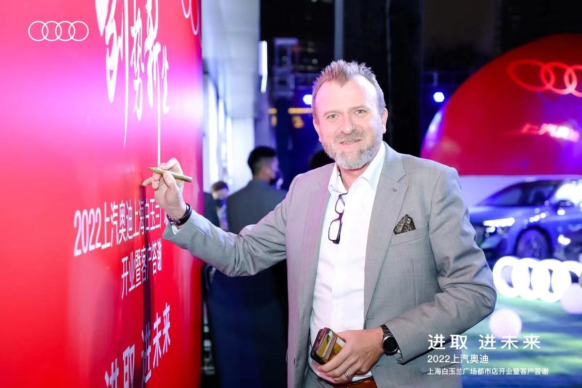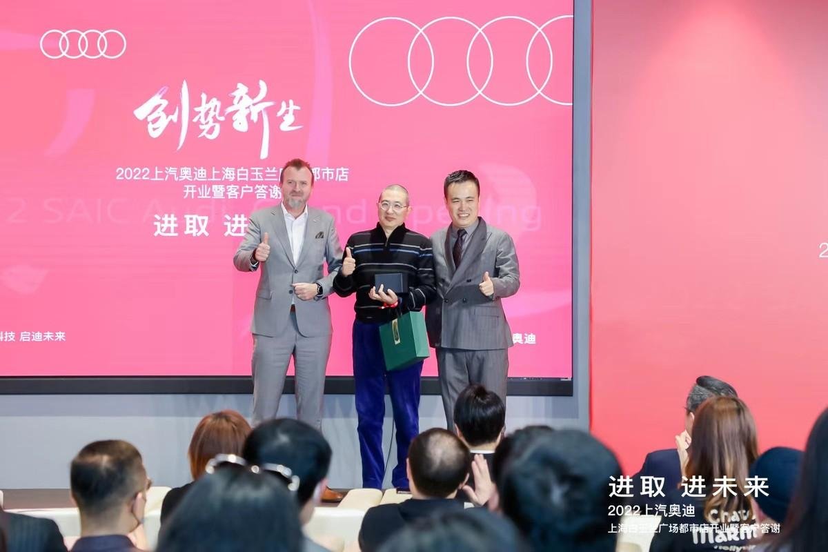 当天,莅临现场的尊贵嘉宾还有上汽奥迪营销事业品牌总经理:Mr Godulla、上汽奥迪客户营销与数字化高级总监:陈历先生、上汽奥迪品牌零售与区域营销高级总监:潘立胤先生、上汽奥迪营销事业渠道发展与服务高级总监:Mr Thomas、上汽奥迪东区总经理:陈启元先生、金光集团地产事业部常务副总经理樊孝通先生、上海东联沪迪汽车销售服务有限公司总经理钱晨先生、金光集团白玉兰广场总经理吴宝杰先生、上海汽车销售协会秘书长:石国清先生、艺术画家彭凯先生、上汽奥迪车友们以及上汽奥迪白玉兰都市店的首位车主徐亚俊先生。
