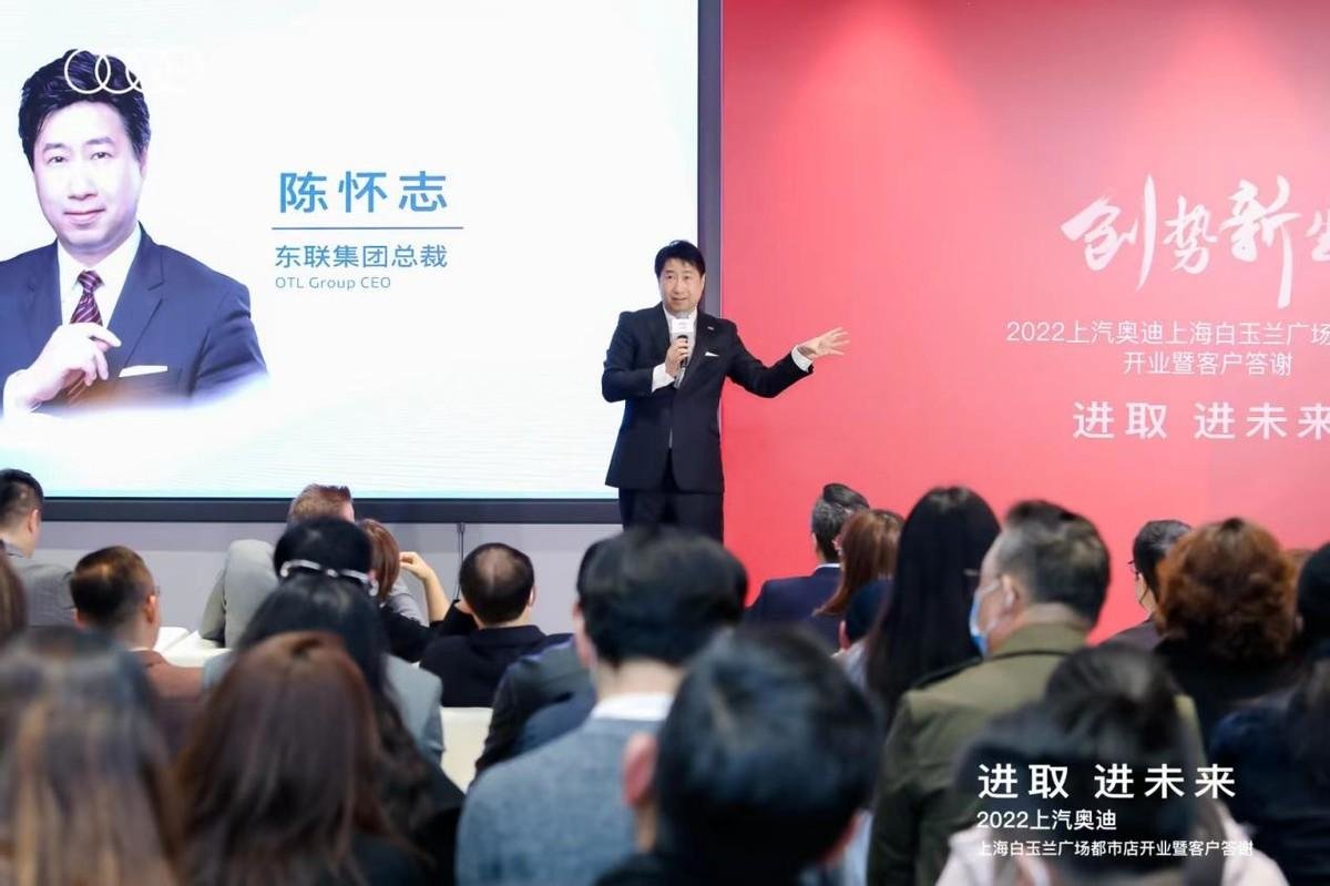 东联集团总裁陈怀志先生在讲话中表示:“东联集团旨在“以人为本”,始终秉承着以用户为中心的理念希望能给我们的车主们更专业更贴心的服务。在上海这座进取之城,我们将携手奥迪同行,与风竞速,共创美好未来。”