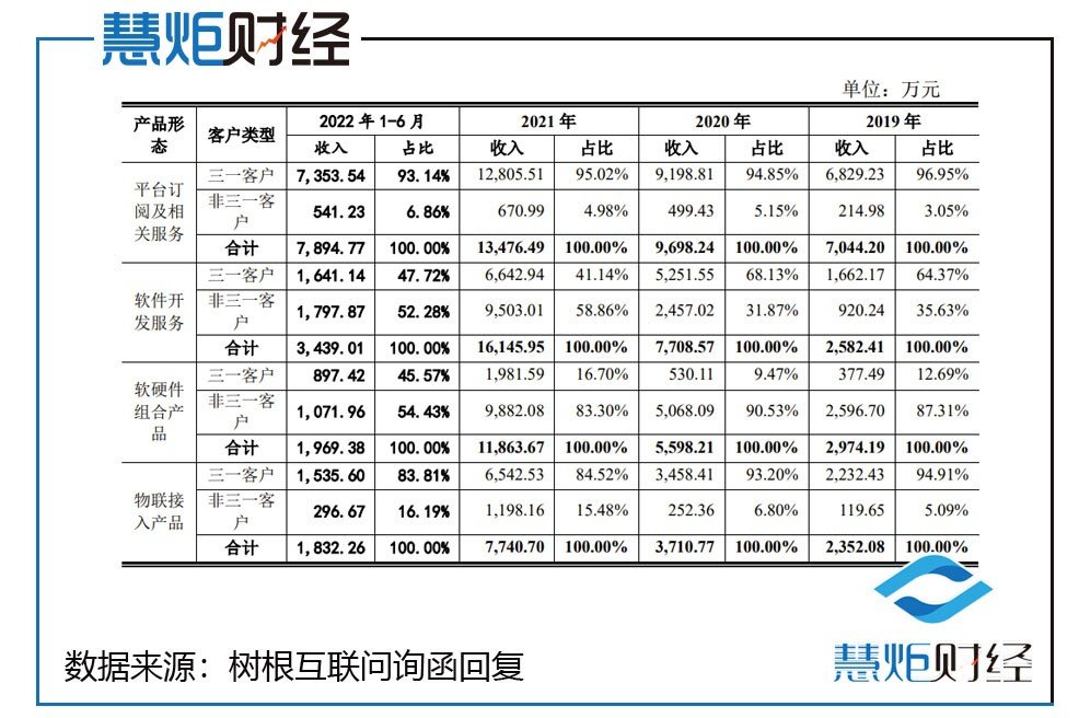 树根互联的软件开发服务、软硬件组合产品以及需要安装调试的物联接入产品业务具有较强的定制化特征, 报告期内,对非三一客户的开发仍处于发展阶段,主要以定制化的项目制产品和服务为主,平台订阅及相关服务较少。