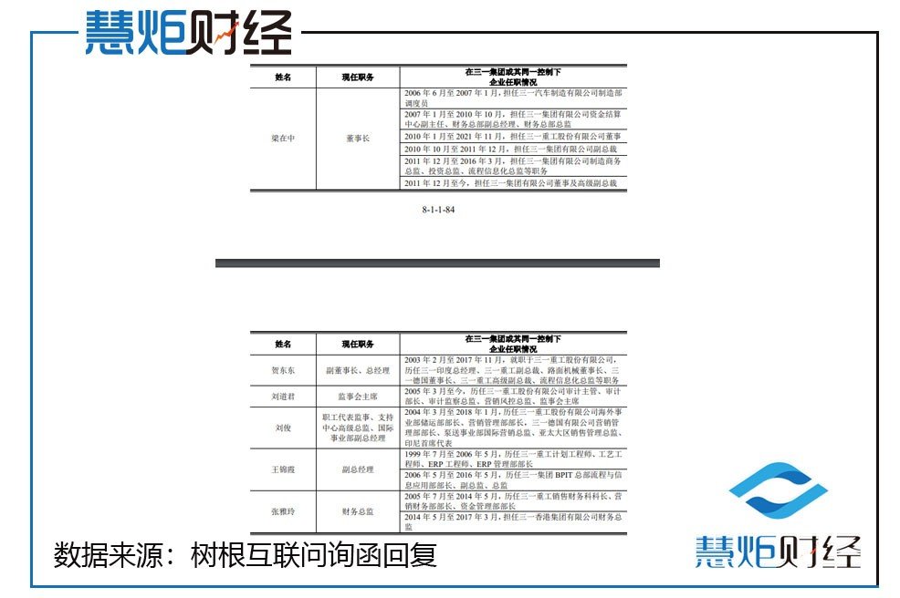 招股书显示树根互联控股股东根智慧合伙人几乎皆为三一集团股东或其亲属。实控人梁在中同时在其父梁稳根控制的多家企业任职,多名董监高曾就职于三一集团,部分仍在关联方处领薪。