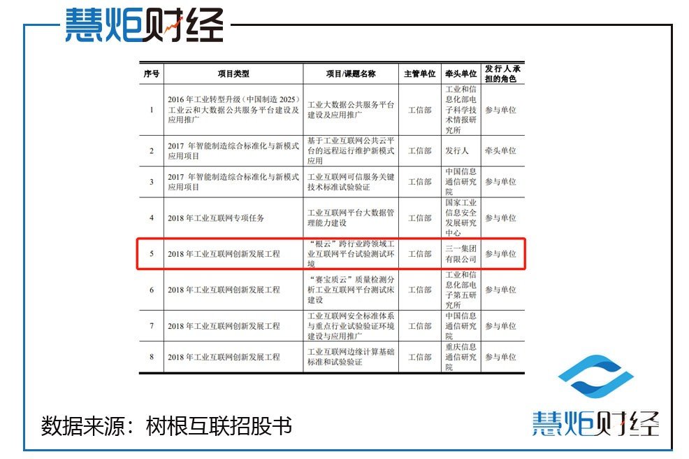招股书显示,树根互联与三一集团也曾进行研发合作,例如,“根云”跨行业跨领域工 业互联网平台试验测试环 境项目,目的之一是为了树根互联的服务能与三一集团产品相契合。