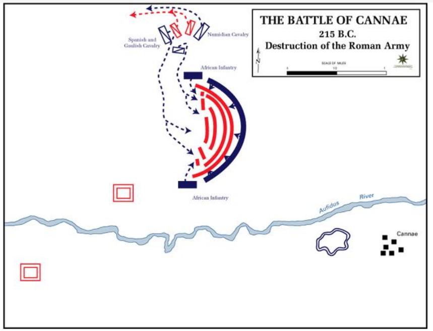 ▲坎尼会战中的半月阵型