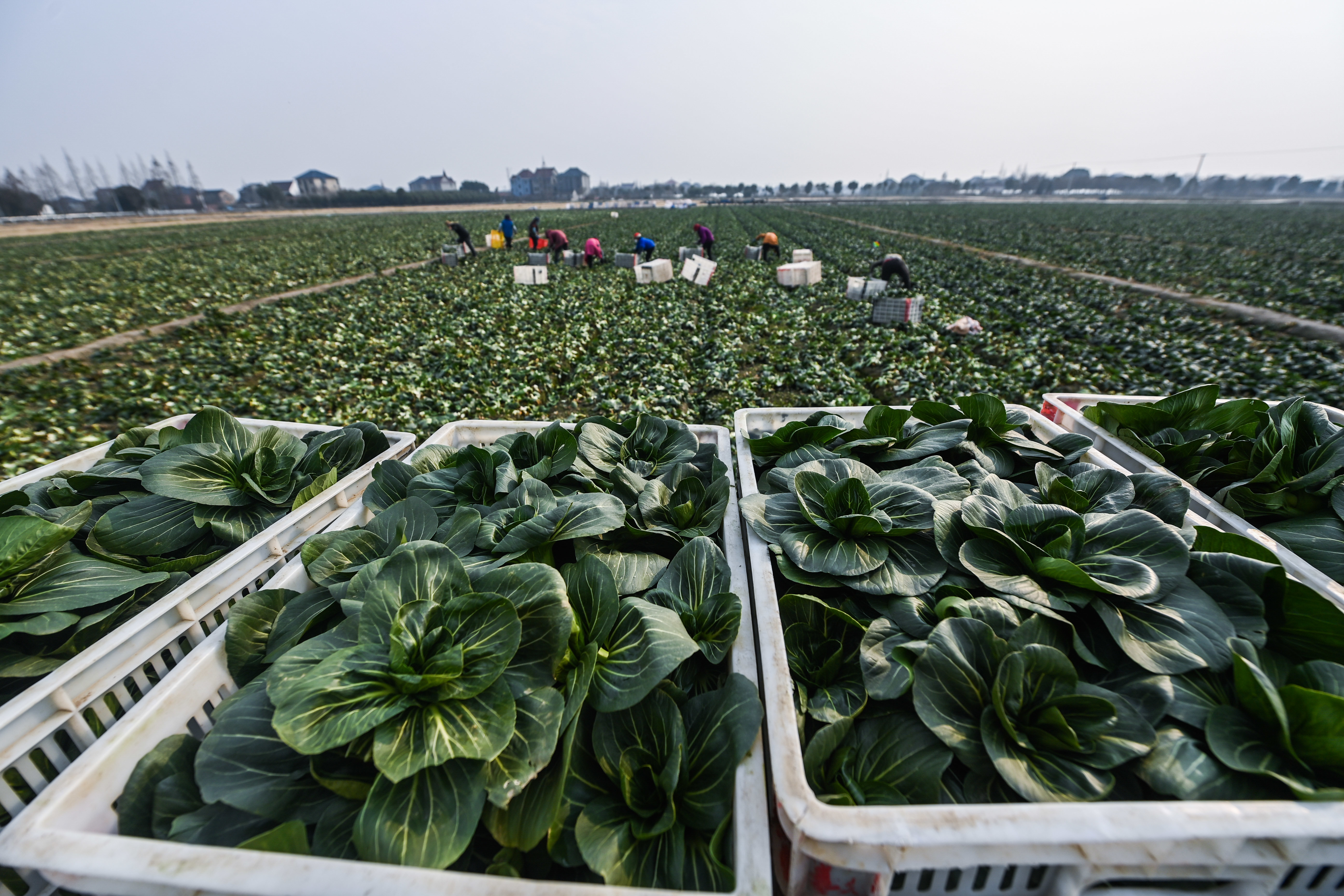 12月27日,在嘉兴市南湖区凤桥镇茜柳村,种植户在采收蔬菜。新华社记者 徐昱 摄
