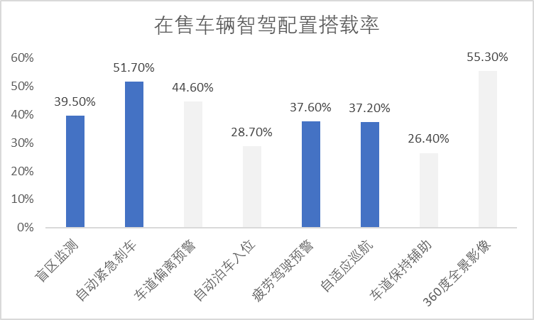 回到智能汽车的定义上来说,智能汽车是搭载先进传感系统、决策系统、执行系统,运用信息通信、互联网、大数据、云计算、人工智能等新技术,具有部分或完全自动驾驶功能,由单纯交通运输工具逐步向智能移动空间转变的新一代汽车,按照大类来分我们又可以分为智舱和智驾。按照这个逻辑我们来初步测算一下智能汽车的渗透率,智舱因为范围比较难以界定,所以我们选择智驾作为参照点。根据汽车之家数据,可推测出整体智能汽车渗透率在40%上下。
