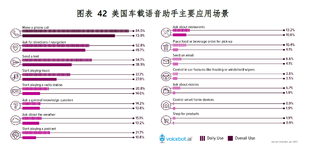 因座舱功能设计上存在大量堆砌、技术门槛较低,造成座舱解决方案雷同、功能臃肿。整车厂更需根据品牌的特性设计符合自身调性的智能座舱,基于场景进行功能设计,而非仅作软硬件堆料。当前消费者诉求主要在:语音交互体验提升、目的地停车入口辅助、倒车辅助、座舱操控便利性和一成不变上车体验上的改进。当前最高频应用主要在:音乐、语音交互、地图、中控、蓝牙电话、360影像,之后才是App应用生态。