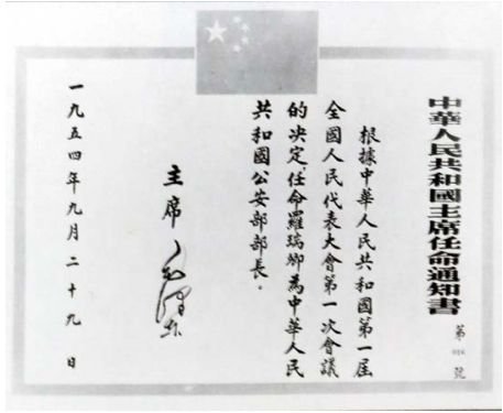任命通知书(图片来源:《纪念罗瑞卿》画册)