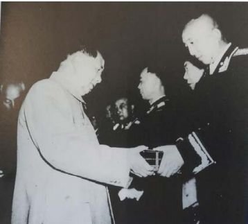 1955年9月,毛泽东为罗瑞卿授勋(图片来源:《纪念罗瑞卿》画册)