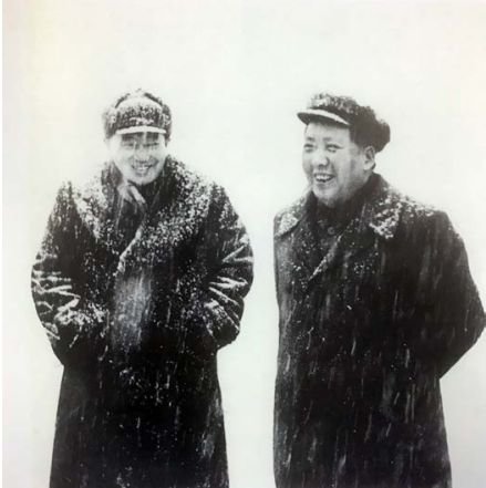 1953年,罗瑞卿陪同毛泽东在雪中视察(图片来源:《纪念罗瑞卿》画册)