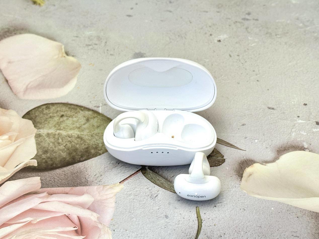 这款耳机是这次评测里最小巧精致的一款,它的佩戴方式也是和其他几款都不同,它的佩戴方式像耳饰一样夹在耳朵上,更加美观,但是刚开始佩戴的时候会有不适感,带有BoCo 9代骨传导振子,音质的通透性更好,整体也更加轻质,支持蓝牙5.2版本,搭配充电仓的续航可以达到24小时,单次8小时,还有IPX7的防水。