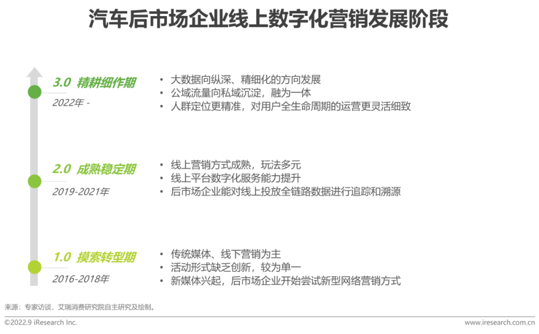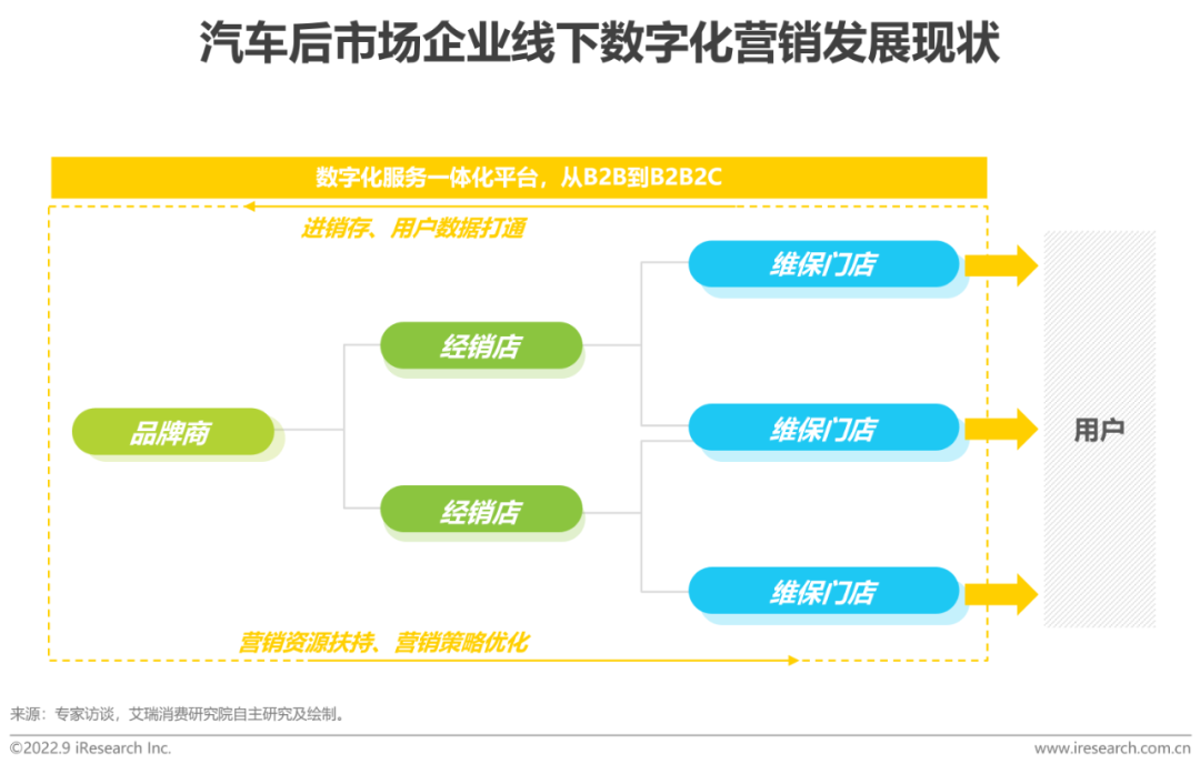 后市场企业线上数字化营销成熟,线下门店数字化营销系统正在推进,未来数字化营销重点是整合全链路资源和私域运营于一体,提升营销精准性、实现用户生命周期的运营。