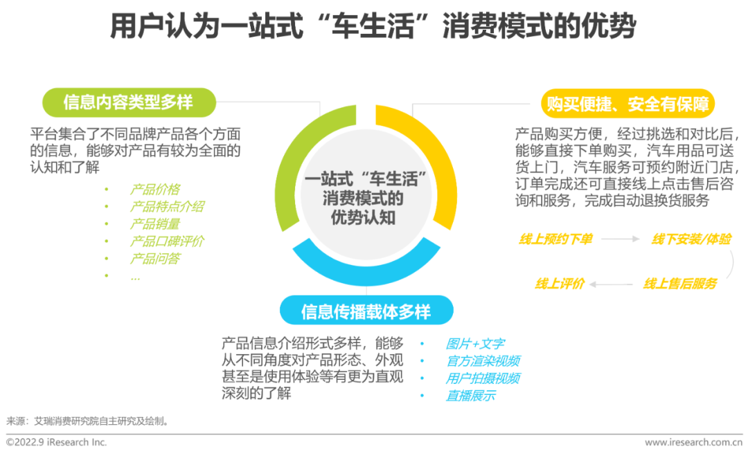 在疫情常态化的社会背景下,用户对“敏捷消费”的需求攀升,迫切需要更方便更简单且更有保障的汽车服务消费方式。在用户看来,一站式“车生活”消费模式的典型优势主要体现在三个方面:一是平台集合了多种多样的信息内容,不用再费时费力的去查找;二是信息展示的形式和载体多元,有图文并茂,也有视频动态展示和直播互动展示,能够更立体更直观的了解产品;三是线上下单、线下体验再到线上售后的一站式购买流程,便捷且有保障,省心省力。