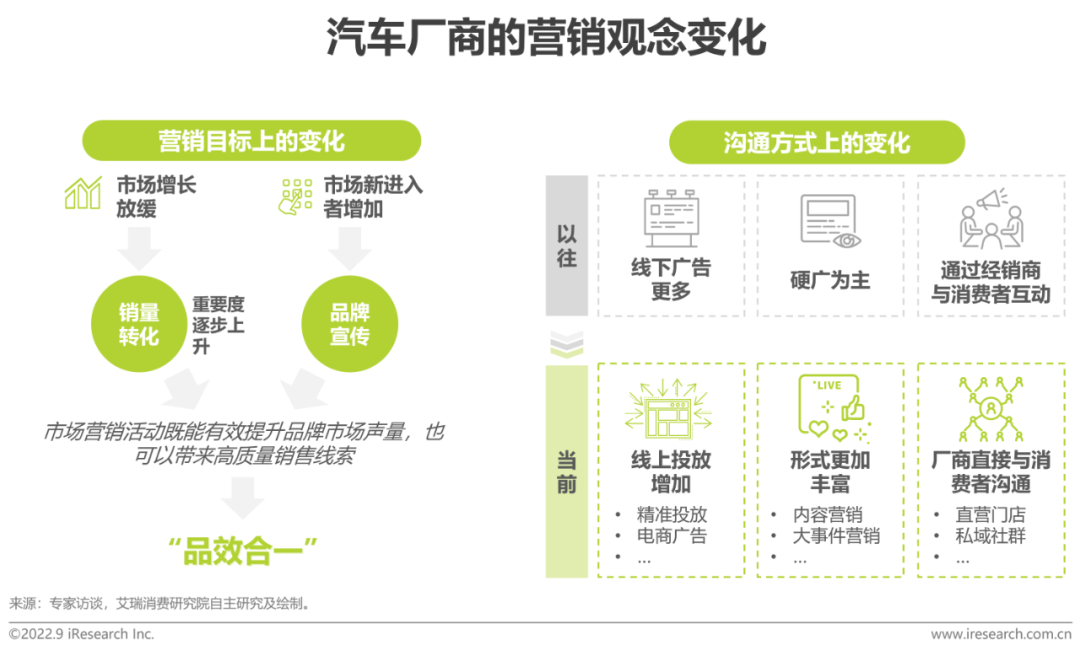 由于近年来国内乘用车市场增速放缓,且市场竞争随着新进入者的增加而变得更加复杂多变,车企对于品效合一的营销方式有着更强的需求。此外,造车新势力在营销与商业模式上的创新也让传统车企也开始逐渐重视与消费者的直接沟通,改变传统通过经销商与消费者进行互动的模式,在营销手段方面则开始运用内容营销、私域营销等方式进行直接且强互动性的营销。