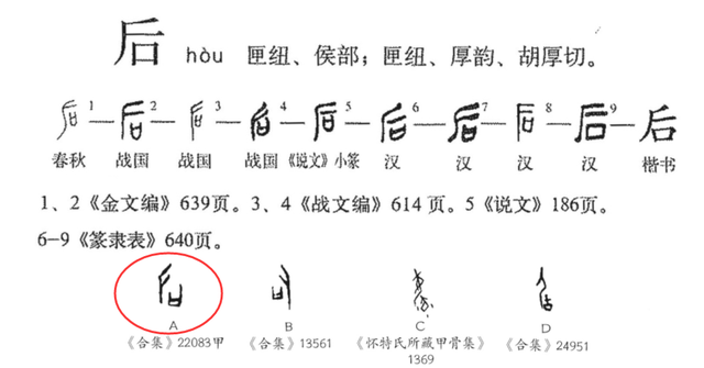 甲骨文中的后字,由“人”与“口”组成,大概相当于一个人正在发号施令,与“司”字字形(见下图)恰好相反。