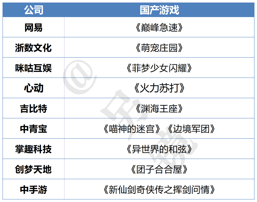 国产游戏方面,网易《巅峰急速》、心动公司《火力苏打》、吉比特《渊海王座》、掌趣科技《异世界的和弦》等获得版号。