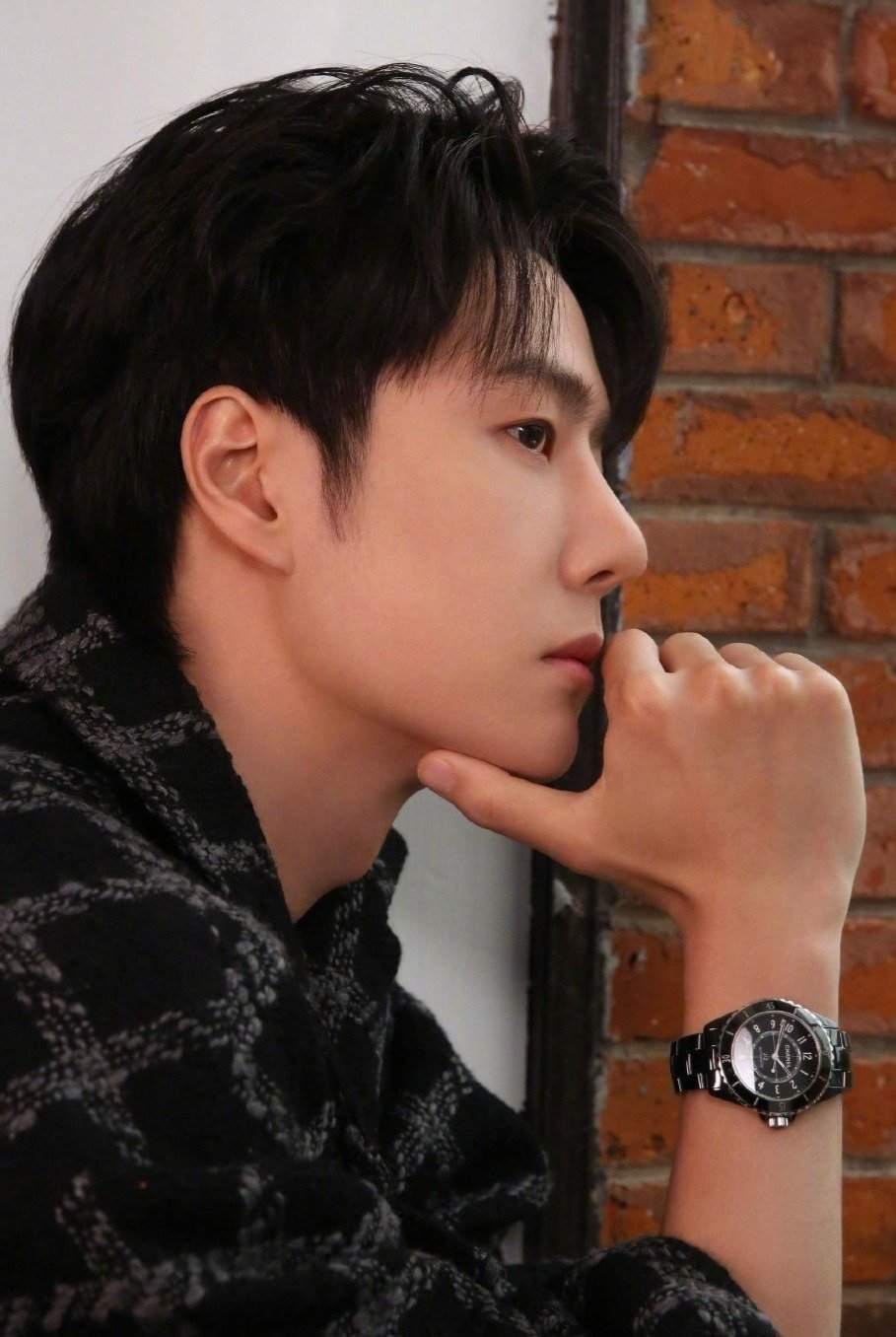 王一博格子大衣造型写真 侧颜精致眼神有戏