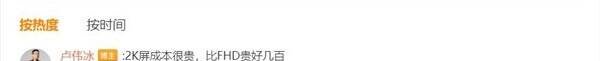 卢伟冰指出,Redmi K60E使用的2K屏幕成本很高,比FHD贵好几倍。