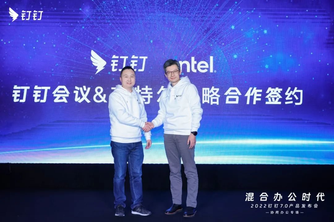 12月28日,钉钉7.0产品发布会“混合办公时代”主题分论坛于杭州举办。在此次论坛上,英特尔联合钉钉展示了双方在协作办公及智能会议领域的一系列领先产品与创新方案。此外,英特尔还与钉钉签署战略合作协议,宣布双方将共同打造更智能的会议大屏系统。该系统有机整合钉钉蜂鸣鸟实验室音频算法、达摩院AI技术与英特尔视频算法的优势,以第12代英特尔®酷睿™芯片为核心深度优化,提升会议大屏的性能,为用户创造会议室场景高清、流畅、智能的开会体验。