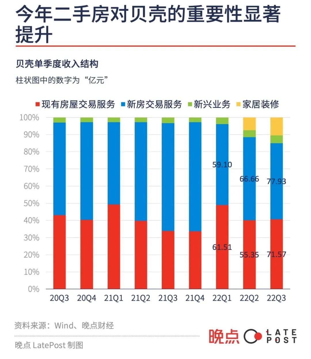 新房市场萎靡的情况下,今年二手房重新成为贝壳的重要市场。财报数据显示今年前三个季度,二手房交易业务分别占贝壳当季收入的 49.02%、40.17% 和 40.67%。