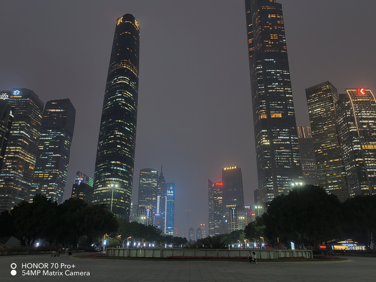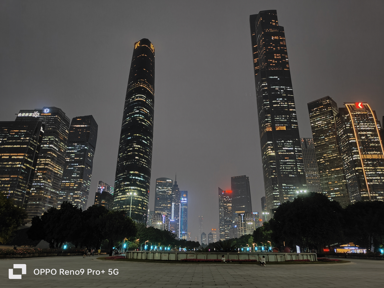 到了晚上,iPhone 14 Pro拍出来的照片亮度适中,但暗部细节方面有所欠缺,看上去有点“糊”的感觉。荣耀70 Pro+对比iPhone 14 Pro,亮度适中,画面明朗不少。但画面有些偏红,和实际观感有所出入,高光压制尚有进步空间。OPPO Reno9 Pro+高光压制最出色,过曝的情况少了不少,所以在画面纯净度最,总体观感最好。