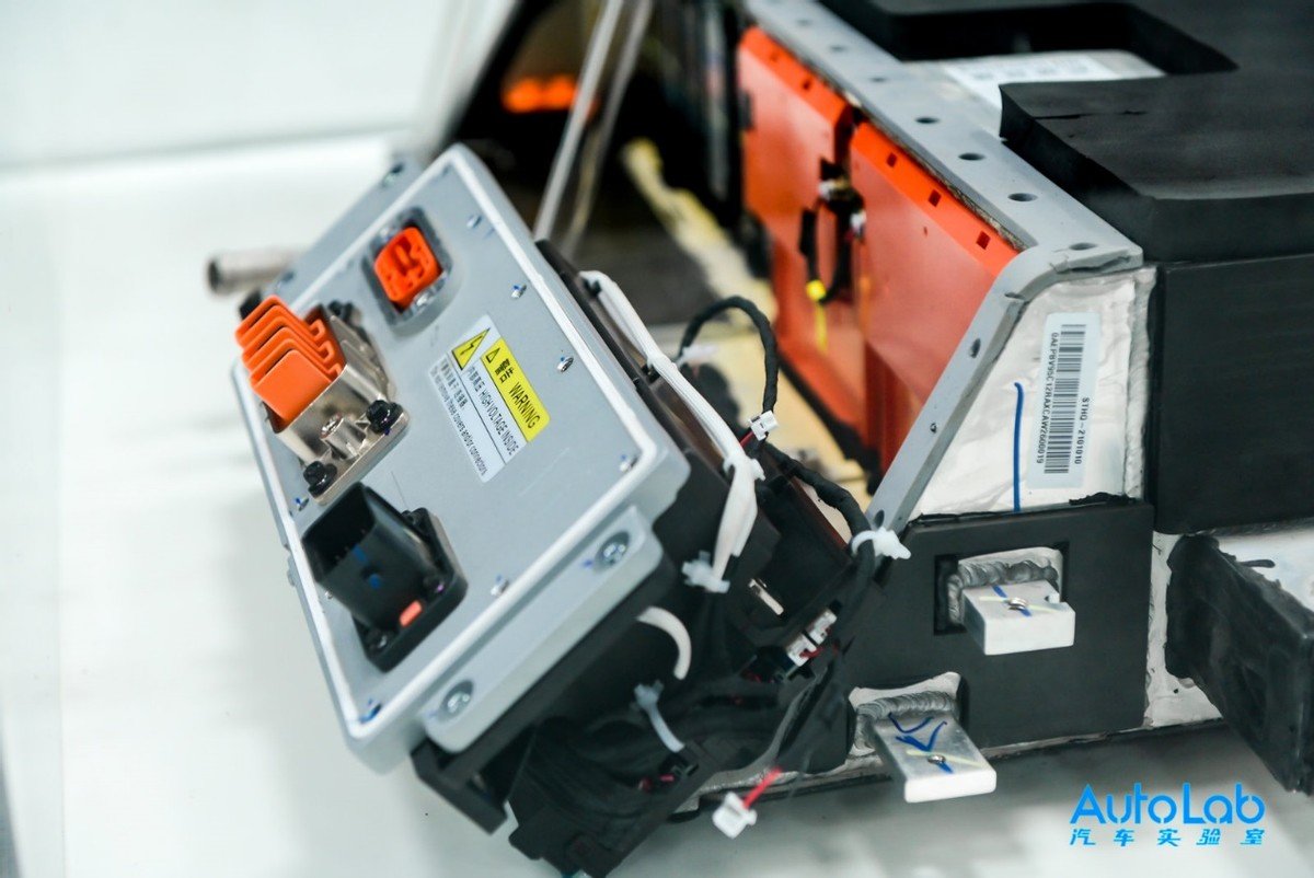 AutoLab拆解发现其驱动电机相比另外两车体积偏大,集成度相对也不高。三电系统包括整车设计上,比如从前机舱一些突兀的结构件能看出,产品开发之初明显缺乏整体性思考,造车技术还待进一步累积。