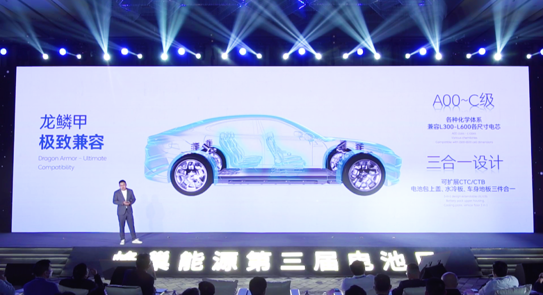 此次发布的龙鳞甲电池无疑是重中之重,是蜂巢能源专门针对用户关注的核心痛点而进行的系统化的结构创新。基于第二代短刀电芯的底出防爆阀设计、热电分离技术、双面冷却设计等一系列创新,龙鳞甲电池可以实现动力电池系统的极致安全、极致续航、极致性能、极致成本、极致兼容。