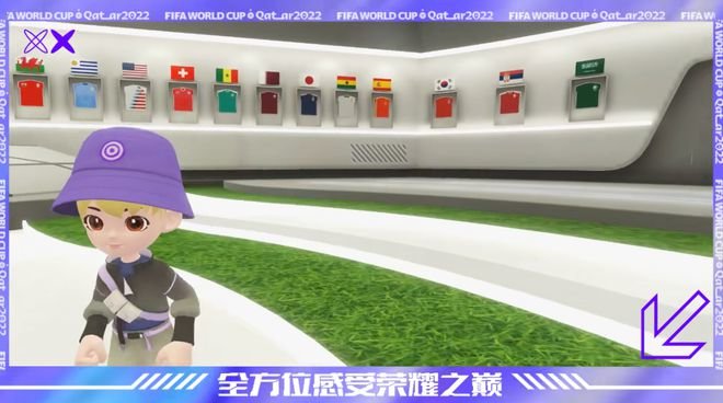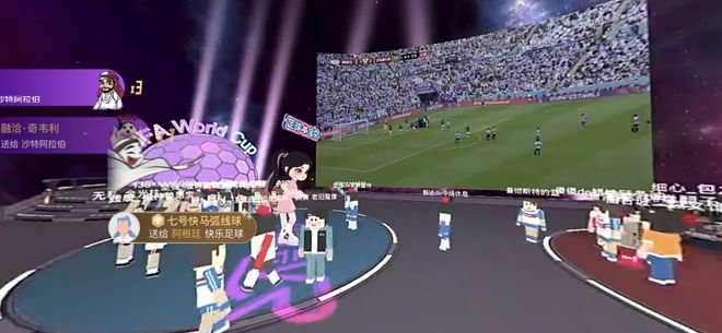 用户通过元宇宙世界中的交互场景,可以沉浸式地获得赛事观看,不仅与世界杯同频在线,更拉满氛围与仪式感,随时随地的身临其境。