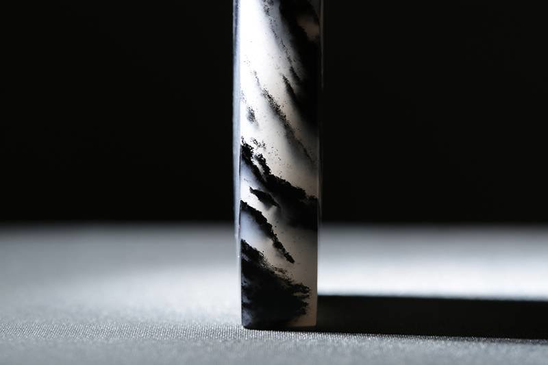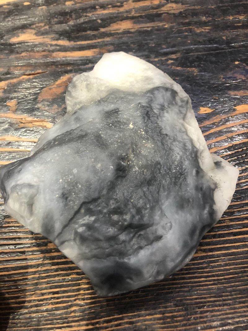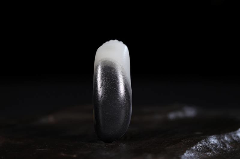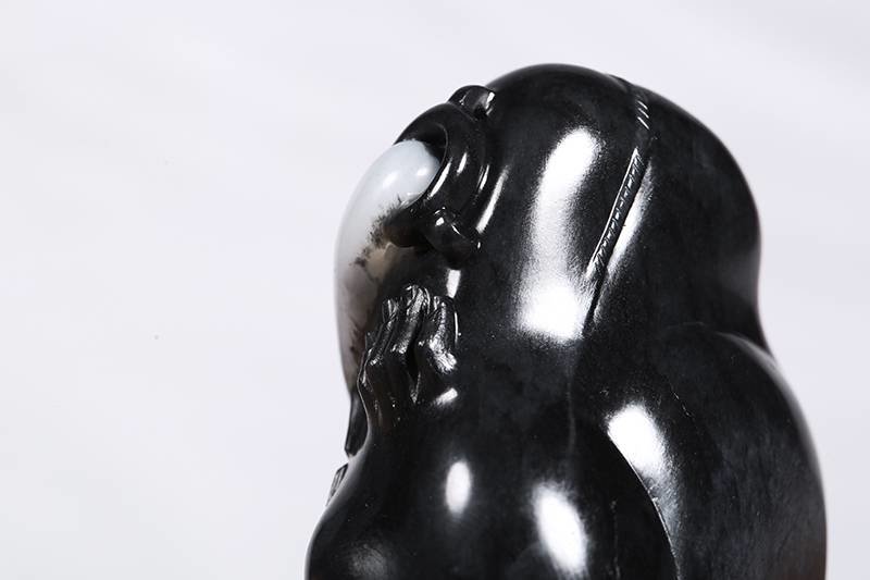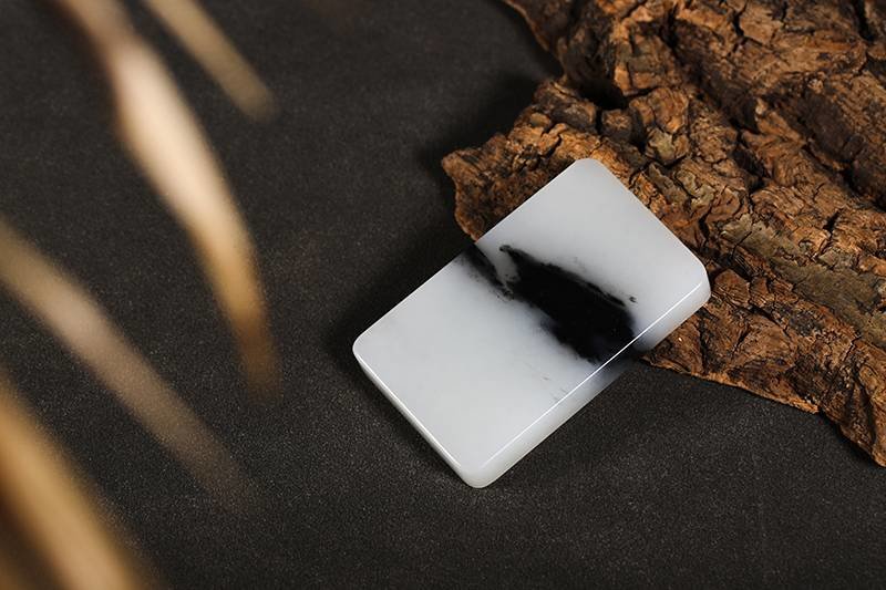 而且,它不仅是白肉部分干,墨色部分也非常干,就像我们之前说的一些墨玉山料,干巴巴的缺少和田玉温润的美感。