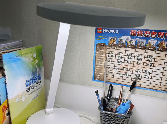 京东京造 星云台灯使用三星进口led灯珠作为发光源,发光范围可覆盖1.6米的书桌,光线显色指数为Ra95,色彩真实度和丰富度还可以,支持Rg0防蓝光伤害,也无频闪和眩光刺眼,可通过底座上的touch bar控制条手动无极调节亮度,使用还算方便,但14W的发光功率还是有点低了,光线亮度不那么充足,也不支持自动调光和定时休息功能,孩子使用不那么方便。
