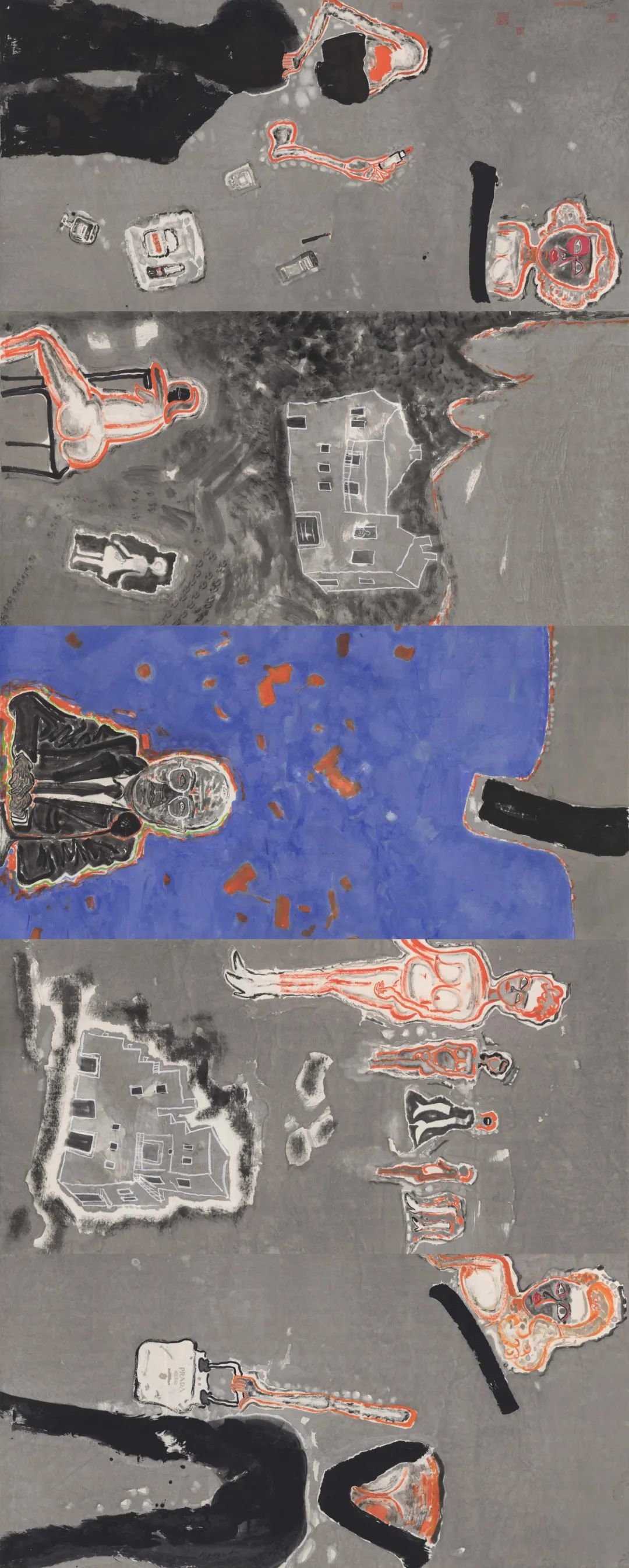 李孝萱 · 《方法论》124cm×270.5cmx5 · 纸本水墨 · 2018