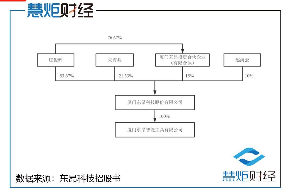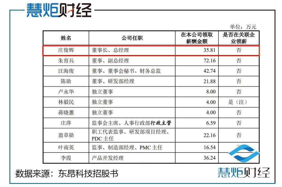 IPO前,庄俊辉直接持有公司53.67%的股权,同时通过东昂投资(员工持股平台)间接控制15.00%的股权,合计控制68.67%股份,为东昂科技控股股东、实际控制人。2019 年 8 月至今,任东昂科技董事长、总经理。