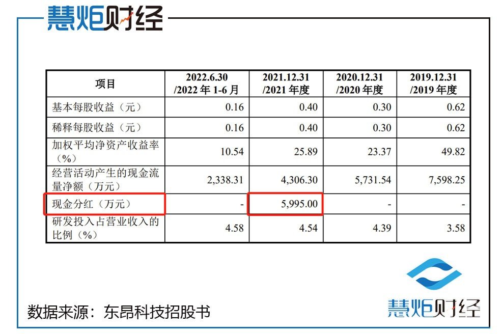 招股书显示,2021 年 9 月,东昂科技分派现金股利 5,995.00 万元(含税)。
