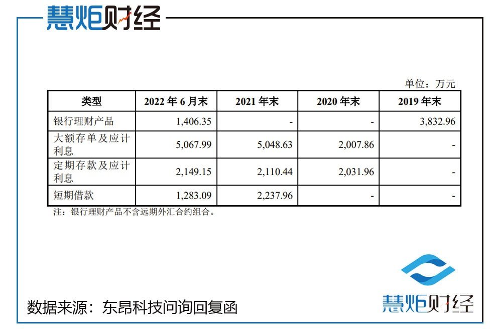 2021 年末及 2022 年 6 月末,东昂科技持有的短期借款本金及应付利息分别为2,237.96 万元和 1,283.09 万元。在问询中,深交所要求说明在自身持有较多投资理财产品的情况下新增大额借款具有商业合理性和必要性。