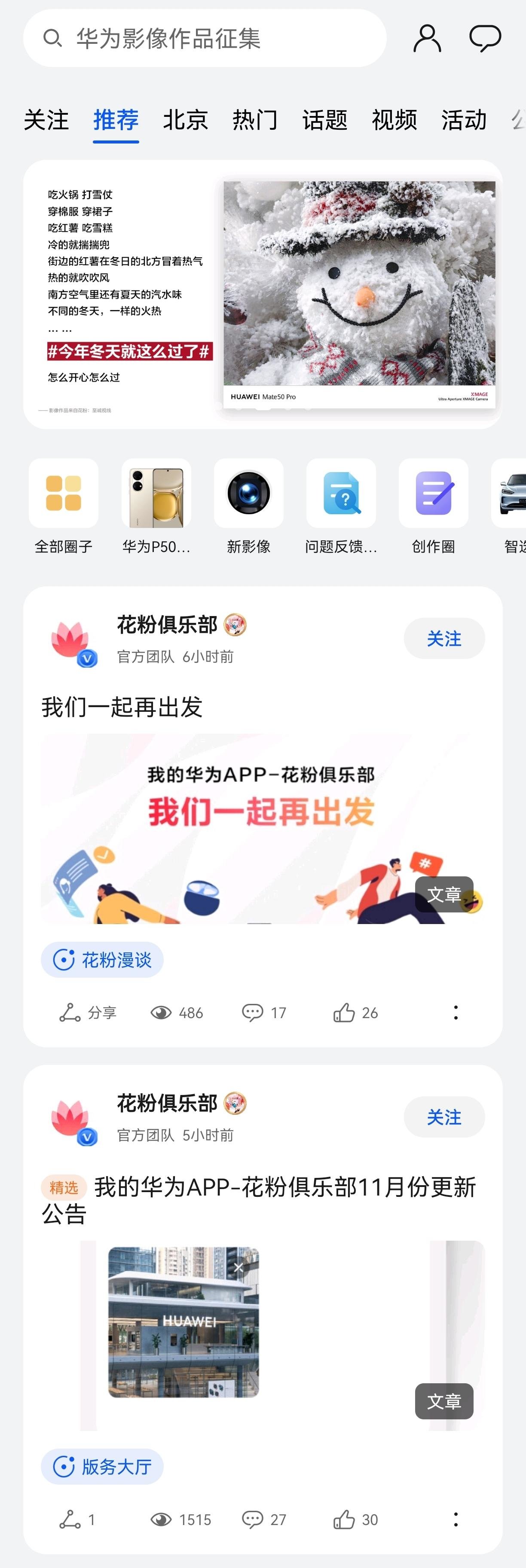 除此之外,花粉俱乐部也正式接入【我的华为】APP。不仅保留花粉俱乐部APP主要功能,华为品牌还在认真听取用户反馈后,增加全部圈子、默认机型入口以及圈子自定义排序功能,优化文章、帖子类型样式,为众多花粉提供更加优质的服务。