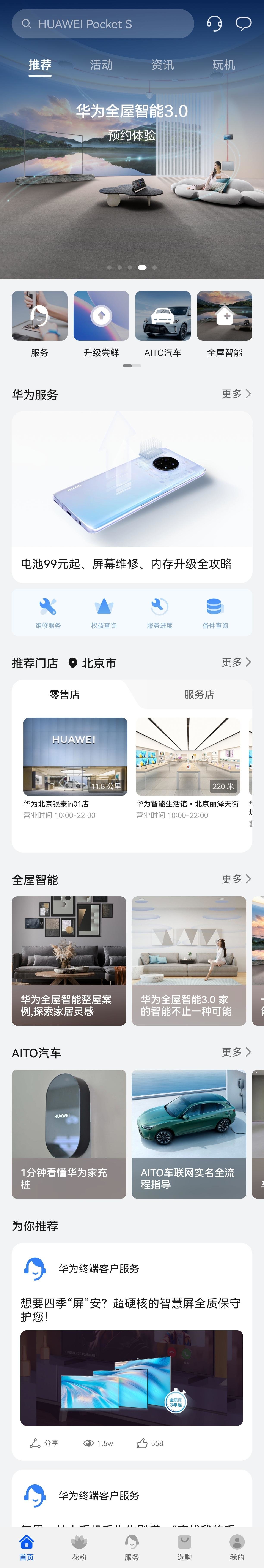 【我的华为】APP本次改版,一共带来两大变化:首页布局与视觉优化、花粉俱乐部接入【我的华为】APP。自此【我的华为】APP将拥有首页、花粉、服务、选购、我的5大页面,同时配备服务、升级尝鲜、AITO汽车、全屋智能、新机权益、同城精彩、精彩直播、华为学堂等多个模块,还与线下华为门店结合推出产品0元预约的功能,内容丰富,玩法多样。