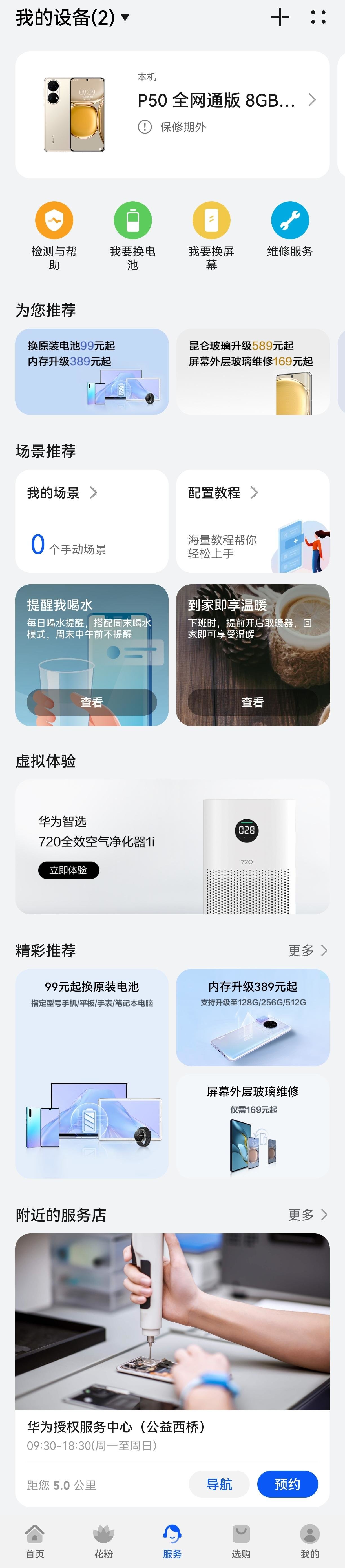 【我的华为】APP为用户提供7*24H专业线上售后服务,到店维修、在线客服、备件价格、寄修服务、预约服务、权益查询、上门服务、升级尝鲜8大快捷服务一键选择,帮助用户通过自己的设备及问题筛选出最优的服务方式(上门/预约/寄修),同时实现工单可视、进度可视、价格可视。【我的华为】还贴心地根据用户授权定位信息为其提供附近的服务门店信息,首页可直接进行预约或查看门店详情。