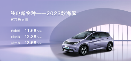比亚迪海豚上市以来,展现了强劲的生命力,11月份更是卖出了2.6万台,上市以来累计销量更是超过了20万台,牢牢占据了两厢轿车市场的霸主地位。12月28日,2023款比亚迪海豚上市,共推出三款车型,官方指导价为11.68-13.68万元。新车在设计和配置方面进行了调整和升级,下面一起来了解一下。