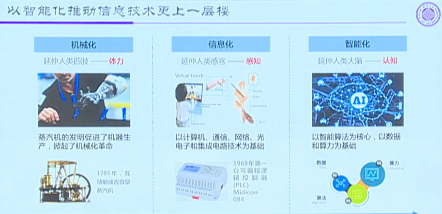 “第一次工业革命解决了机械化,我们把我们的四肢延伸了,后来的信息化解决了感官的问题,我们看得更远、声音传得更远了,现在的技术革命解决了大脑的脑力的问题。随着人工智能技术的发展,中国跟美国差不太多了。所以美国这时候要限制中国,不把先进芯片卖给中国,希望让阻止中国的人工智能的发展。但是美国是不是能够真的阻止中国的发展呢?我认为未必,我们拭目以待!”