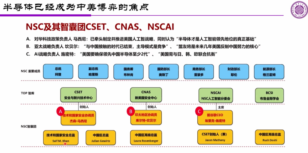 近年来,半导体已经成为中美竞争博弈的焦点。美国也持续将半导体技术“武器化”,通过一系列严格的出口管制措施来不断地打压和限制中国的半导体产业的发展。在这一过程当中,美国国家安全委员会(NSC)和美国的一些智库起到了推波助澜的作用。