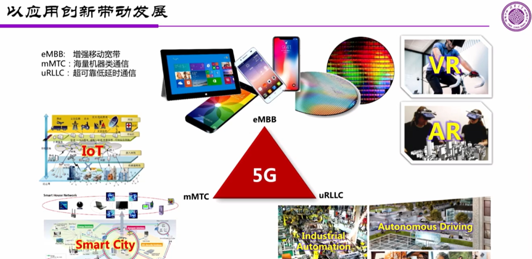 魏少军教授认为,我们应该“以应用创新带动产业发展”。比如在我们具有优势的5G应用领域,目前5G的应用刚刚开始,eMBB只是一个重要的应用而已,真正重要的是mMTC和uRLLC,可以应用在农业现代化上。我们有18亿亩的耕地红线不可碰,相当于1.2亿公顷,每公顷1万平方米,如果每平方米放一个小传感器就需要1.2万亿个传感器,这是原来不可想象的,因为原来有线的方式要挖沟埋电缆把这些传感器埋起来了,现在有了5G,你只要架一个5G的基站,方圆多少平方公里土地的传感器都可以连接起来。