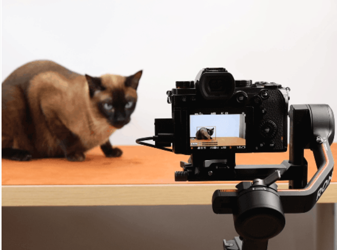 ④ 当相机识别被摄对象后,扣动稳定器上的扳机即可开始追踪。
