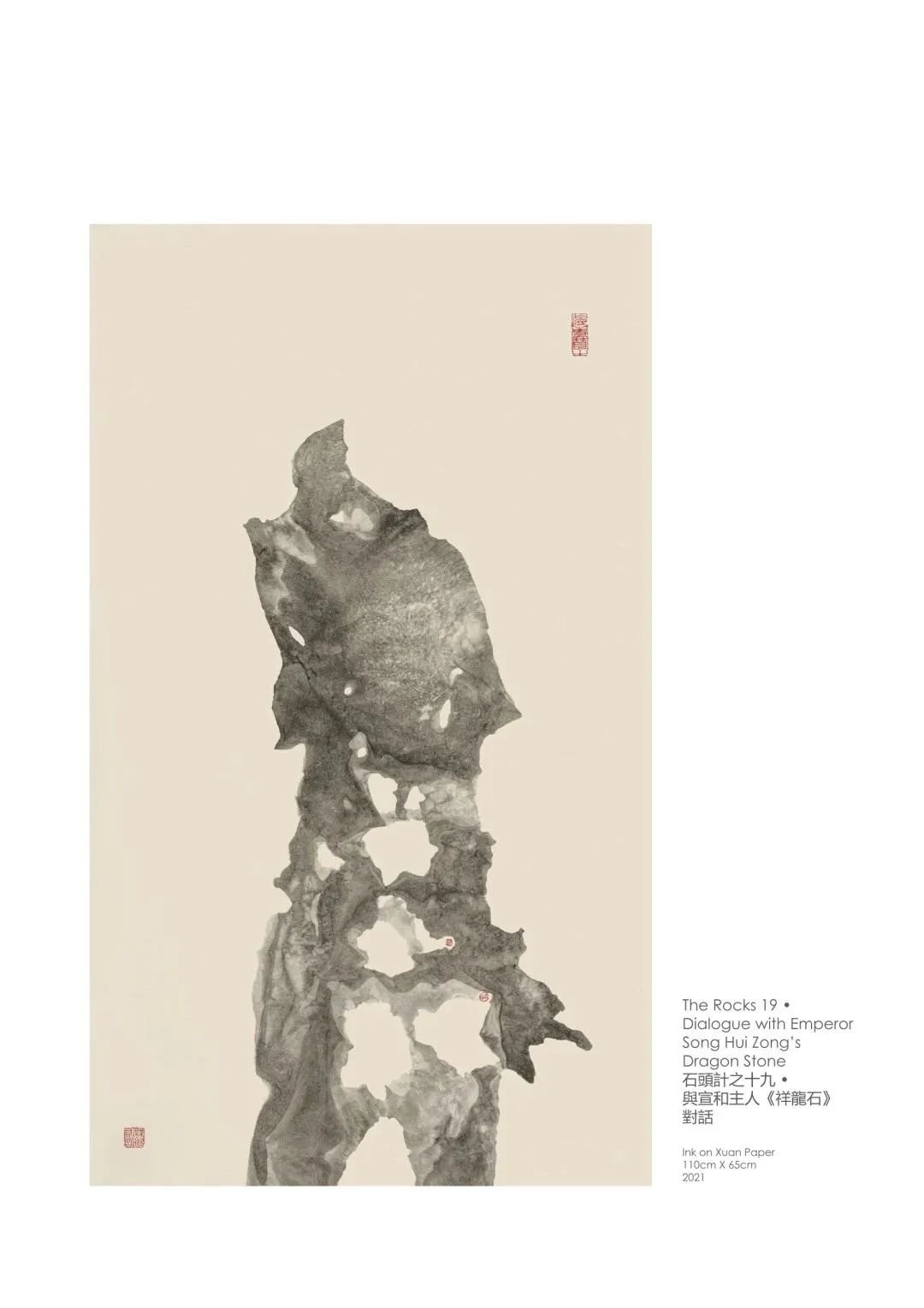 此次展出的核心为刘庆伦近作《石头计》水墨作品,传递东方思想中刚柔相济、共生共存、以气契道的内化气质。