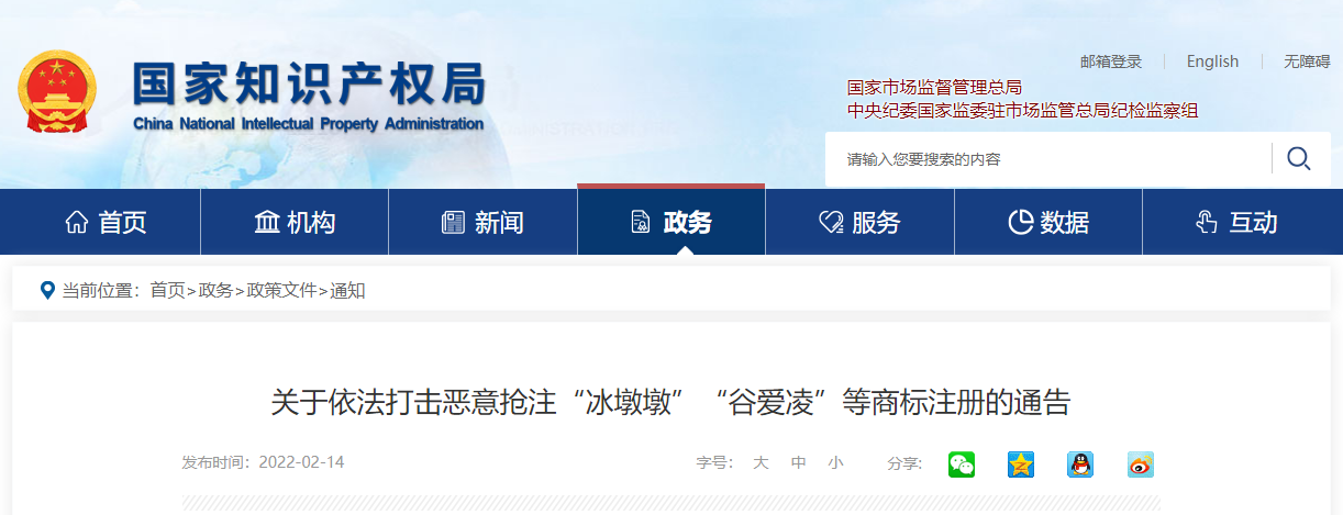国家知识产权于局2022年2月14日曾发布通告,对正在申请的“冰墩墩”“谷爱凌”等429件商标予以驳回;对已经注册的“雪墩墩”“谷爱凌”等43件商标宣告无效。3月22日,国家知识产权局再次发布通告,驳回包括“青蛙公主”、“翊鸣”、“一起向未来”、“雪飞燕”、第“BINDUNDUN”、“雪绒融”在内的1270件涉冬奥会、冬残奥会商标注册申请。