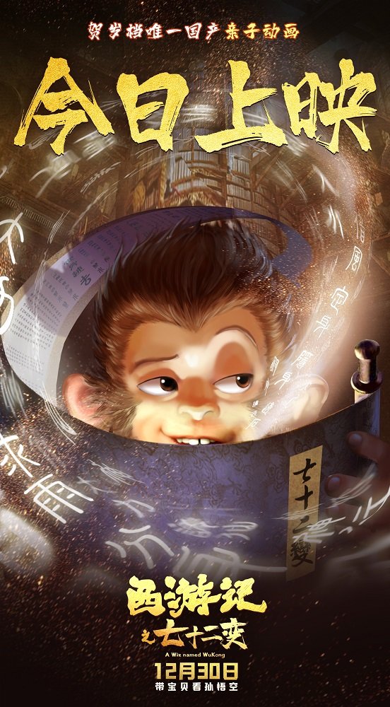 最新发布的今日上映海报中,小猴王孙悟空身处图书馆的环境里,手拿七十二变仙法学习卷轴,神奇的字符和咒语从书中飞出,让孙悟空两眼放光,沉浸其中。今日,小猴王孙悟空的修习仙法之路正式开启,他将经历人生中极其重要的一段时光——学生时代,通过在三星洞仙法学院的学习,学会七十二般变化,这也是观众们在以往的《西游记》题材电影中未曾看到过的孙悟空的故事。他为何如此认真钻研学习七十二变,他的目标是什么呢?影片中将会一一揭晓。